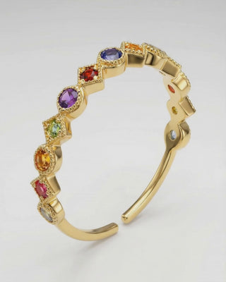 Zirkonia Regnbue Ring er lavet af messing og er belagt med et ekstra tykt lag 18 karat guld.
